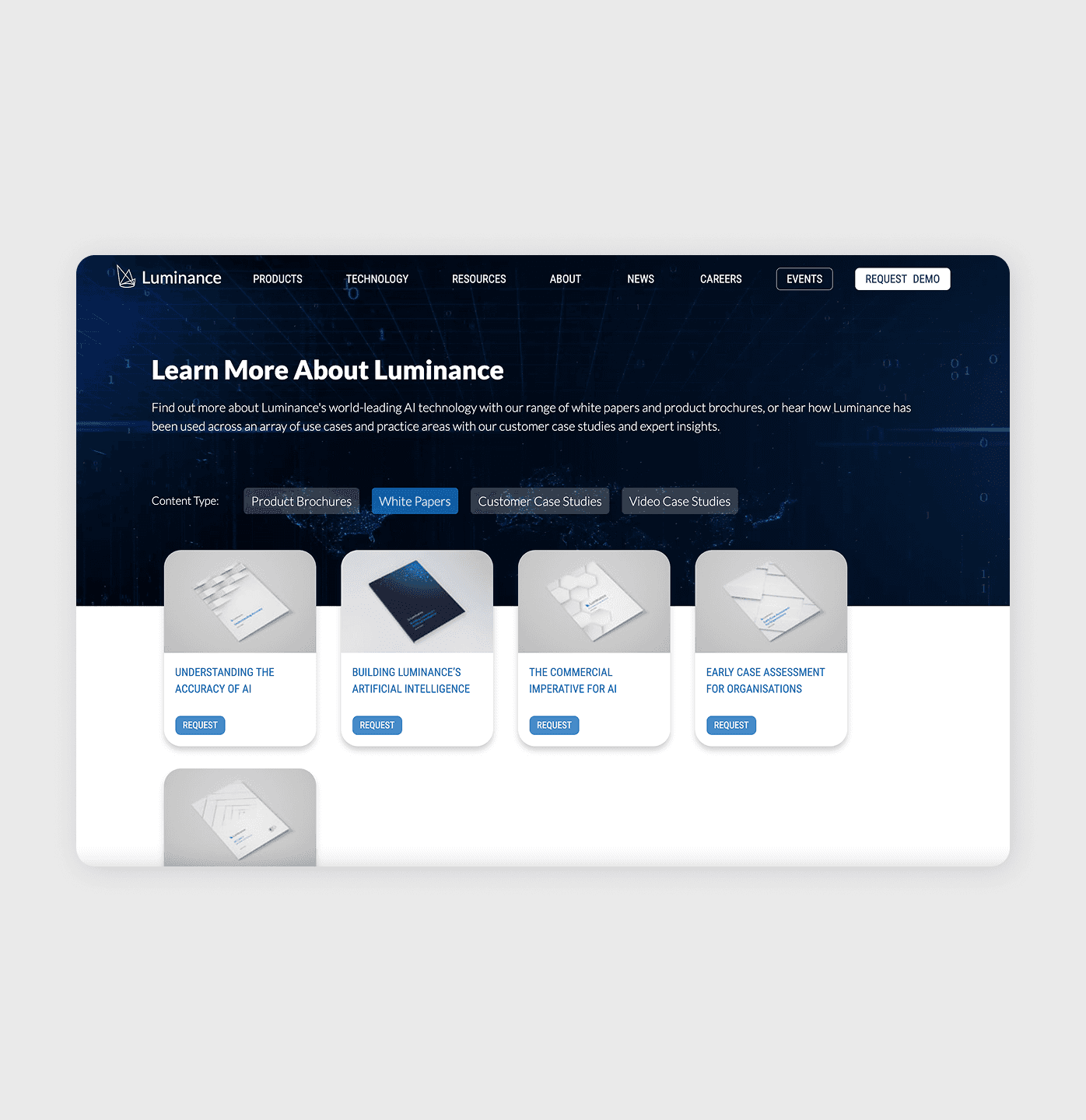 Luminance is an AI platform for document analysis, built to help legal teams process and understand complex information at speed. During my two years there, I worked across both marketing and design, creating brochures, video testimonials, and digital content that highlighted the platform’s capabilities.